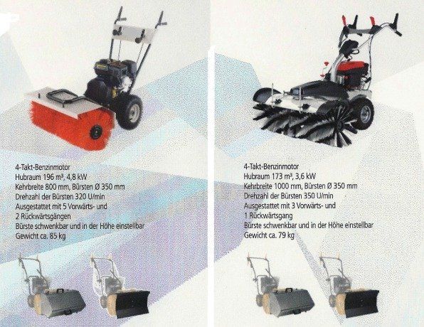 Die Kehrmaschinen sind zum Kehren und Aufräumen von Abfällen, Laub, Papier und Stroh bestimmt. Im Winter werden die Kehrmaschinen zum Schneeräumen auf Gehsteigen, Parkplätzen usw. verwendet. Diese universellen Maschinen können auch in der Industrie, Landwirtschaft, in Städten, Dörfern, auf Sportplätzen, in Garagen und Parkanlagen eingesetzt werden. Ballonbereifung für Sport- und Tennisplatzpflege gegen Aufpreis möglich.